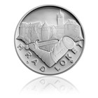 On the obverse side, the side view of the castle is depicted resembling an elbow which is featured below. The elbow is the main symbol of the castle and town, and this shape is enhanced by untraditional placement of text on the medal – at right angle.