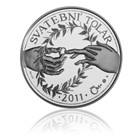 On the obverse side of the wedding thaler its author, the academic painter Majka Wichnerová, placed the motif of a wedding ring fitted on a finger and a handshake as a symbol of two lives joining together. Both sides of the thaler are decorated by a myrtle sprout that is used at every wedding.