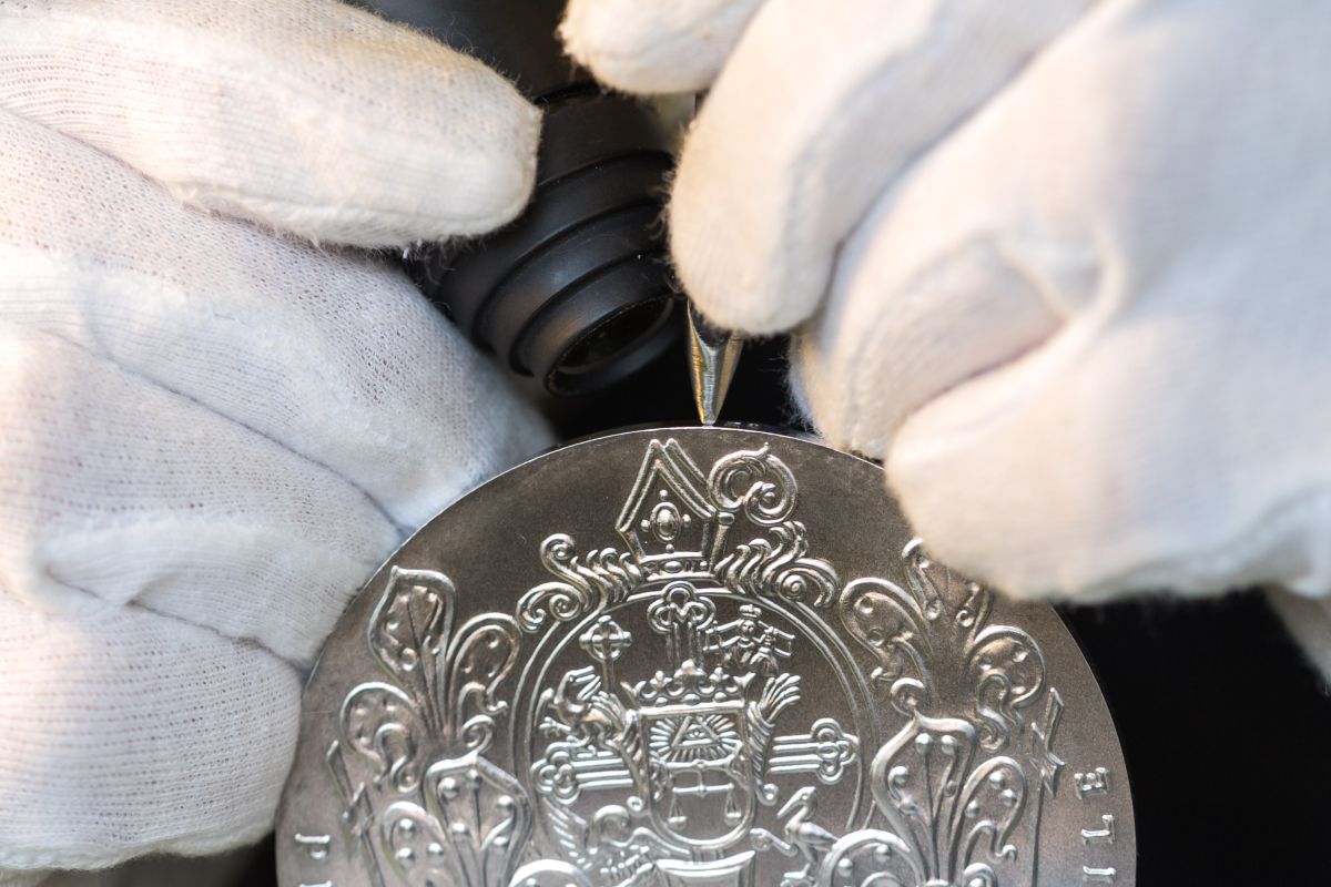 Medaile je zhotovena z ryzí platiny – výchozí materiál byl zpracován ve vídeňské mincovně a je opatřen mezinárodním certifikátem. Ten je vytištěn na ručním papíře vyrobeném ve Velkých Losinách a ozdoben kovovým vlysem v podobě medaile.