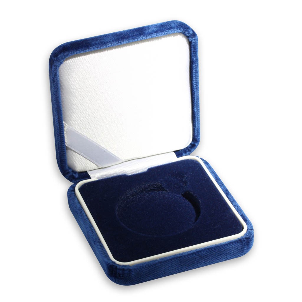 Tato sametová etue modré barvy pojme minci či medaili v kapsli o průměru 44,38 mm. Je proto ideální například pro uložení zlatých i stříbrných mincí Český lev o hmotnosti jedné trojské unce, které se kvůli svému investičnímu charakteru prodávají bez etue.